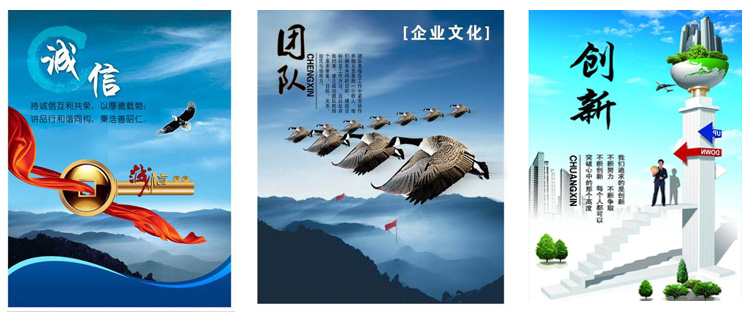 公司理念:诚信、责任、勤奋、团结、专业、创新 企业宗旨:社会为己任,企业为本位,团队为核心 共创财富 不断发展 工作作风:认真、快、坚守承诺; 经营目标:提供最优质的技术服务、做业主最满意的供应商。 合作风格:外求发展 广交朋友 资源整合 合作共赢 企业人才观:成人成才---人才是企业的资本